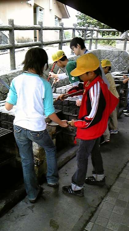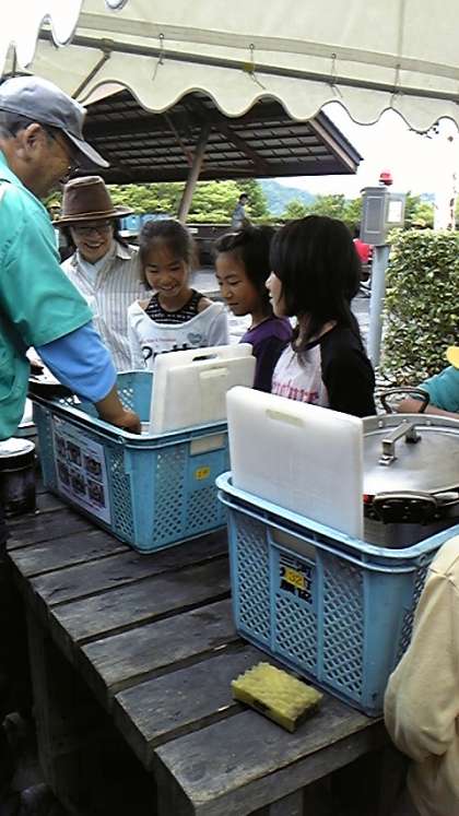 食べた後は、片付けです。鍋、飯ごうをきれいに洗い、かまどの燃えがらもすべて片付けました。係りの方からも、「合格」と言われました。