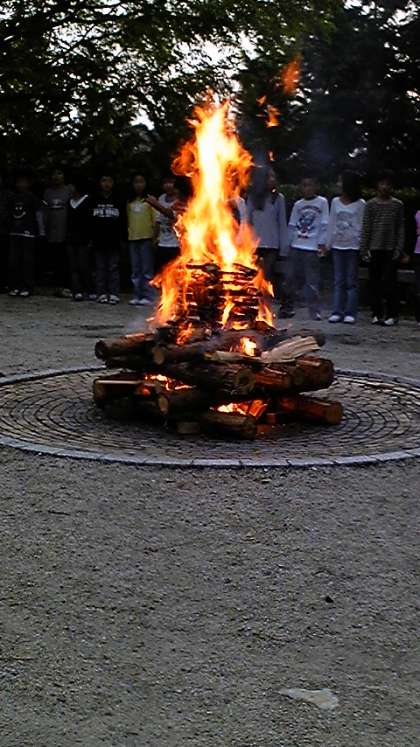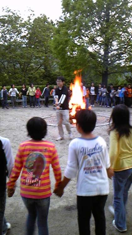 昨日、雨のために実施できなかったキャンプファイヤー。一日遅れでしたが、ファイヤー係りのがんばりで、ゲーム・ダンス・スタンツと、とても盛り上がりました。