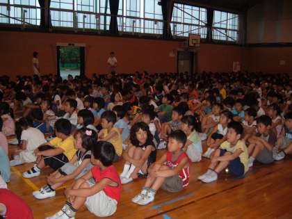 この日も、朝、だれに言われるでもなく、廊下に静かに並んで座って、終業式の入場準備ができていました。他学年の2〜6年生までどの学年もできていなかったことが、1年生だけができていて、先生たちを驚かせてくれました。