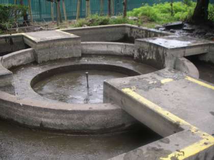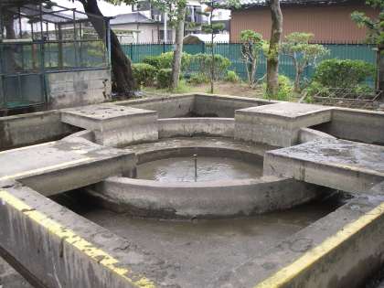 昨日から大変な作業が続いていた観察池はとてもきれいになりました。濁った水が抜かれた池は、温泉の風呂のような造りになっていました。