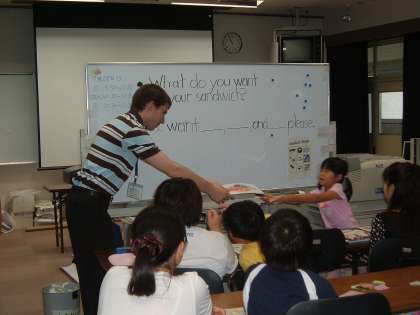 昨日に引き続き、親子英会話教室が開かれました。今日は、お客さんと店員さんになりきり、サンドイッチを注文する練習をしました。好きなサンドイッチの具を3つ選び、英語で注文します。サンドイッチは200円だったそうですよ!みんな、オリジナルサンドイッチを買うことができて、とてもうれしそうでした。