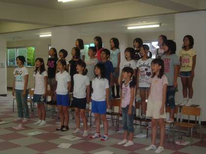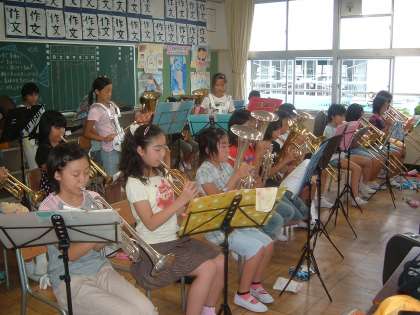 最近、夏休みというのに雨が降り続くなど不安定な日が続いています。きょうも、昼前にかなり激しく雨が降りました。サッカー部や水泳部に雨の影響が出ました。残念ながらプール開放も2日続けて中止となりました。そんな中、雨の影響を受けない室内で行う合唱部、金管バンド部、ミニバスケットボール部は熱心に活動をしました。