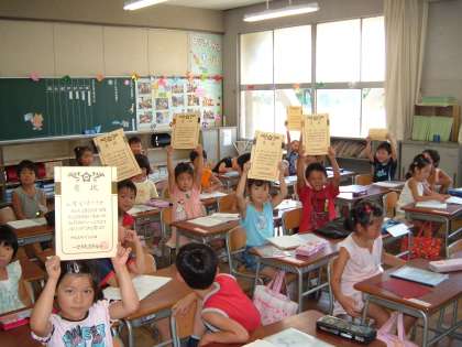 今日は、写生会の表彰を受けたり、日誌の答え合わせをしたり、草取りをしたりしました。