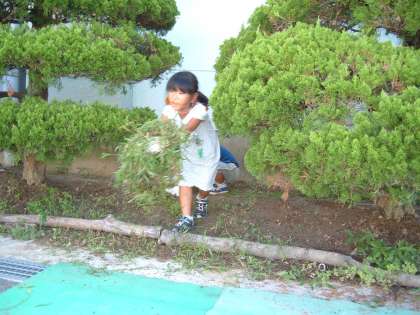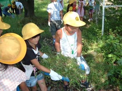 夏休みの間にいっぱい伸びた草をみんなで協力してとりました。