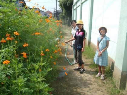 今日も気温が30度を越す厳しい暑さとなりました。6年生は夏休み中も、花壇の水やりとうさぎ・鳥小屋の清掃・世話を交代で行っています。千秋小学校の動植物の元気さは、6年生のおかげですね。