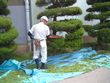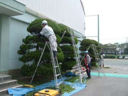 暑い一日 たくさんの方々が、千秋小学校の校庭でシルバーの剪定講習会に参加されました。見る見るうちに、校庭の木々がサッパリと剪定されていきました。きもちがいいですね。