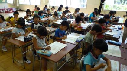 きょうは全校出校日です。始業式まであと一週間。夏休み中の宿題や応募作品を出したり、点検したりしました。みんな日焼けをして元気なようすだったので何よりです。始業式でも、みんなの元気な姿が見られることを楽しみにしています。