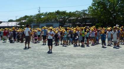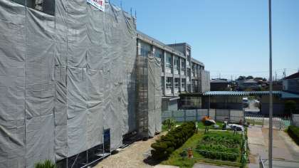 各学級で学活などの授業をした後、一斉下校で帰りました。現在、学校は耐震工事で北舎を中心にたいへん不便な状態です。9月以降も工事の影響でご迷惑をおかけします。また、シルバーの樹木剪定講習会のあと、業者の方に背の高いケヤキやメタセコイアの木の剪定をしてもらい、学校中がすっきりとした感じになりました。