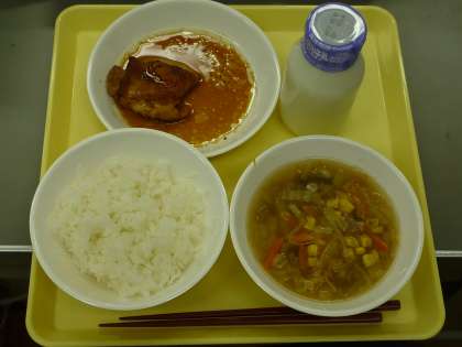 9月2日(水)の給食です。献立は、ごはん、牛乳、コーンスープ、照り鳥です。2学期最初の給食ということで、みんなとても楽しみにしていました。ただ、新型インフルエンザの流行が心配されるので、今までも実施していたことですが、手洗いはもちろん、配ぜん台や机の水ぶきなどをより徹底していきます。