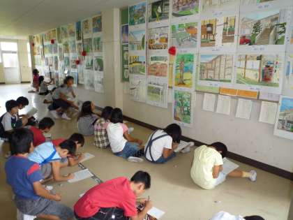 作品展2日目です。2日間でたくさんの方々に参観していただきありがとうございました。また、今日から写生大会の巡回展が始まりました。他の学校の子たちの優れた作品を鑑賞することは、大変参考になり刺激も受けます。5年生の子たちが感想をかいていました。