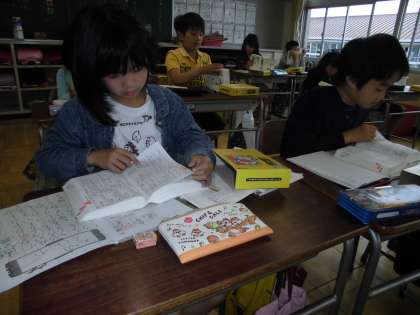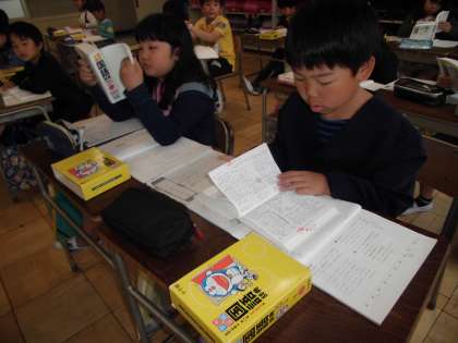 国語の学習では、「国語辞典の使い方」を勉強しています。五十音順に見出し語が並んでいることを使って、言葉を探しました。
