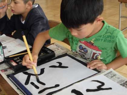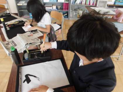 書写の時間に習字を書きました。自分の好きな字を気持ちを込めて書き上げていました。皆、上手に書いていました。