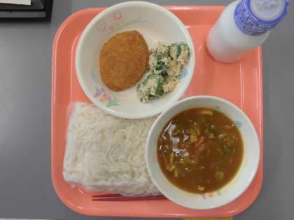 白玉うどん、和風カレーうどん、ポテトコロッケ、鶏ささみの梅肉和え
