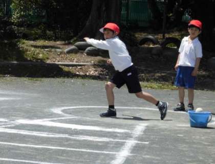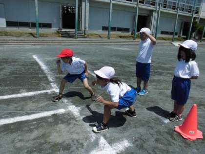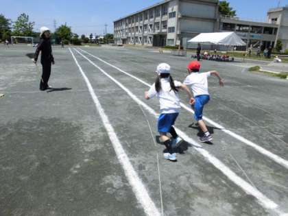 まっすぐ前を見てゴール!かっこよかったね。ボール投げにも挑戦しました。空に向かって遠くまでとばしました。