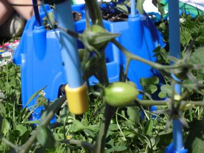 ミニトマトの観察をみんなでしました。2週間の間にどんどん大きくなって、もうかわいい花の咲いている子や、青い実のできている子がいました。わき芽の摘み方も覚えました。これからも、一生懸命観察を続けていってほしいと思います。