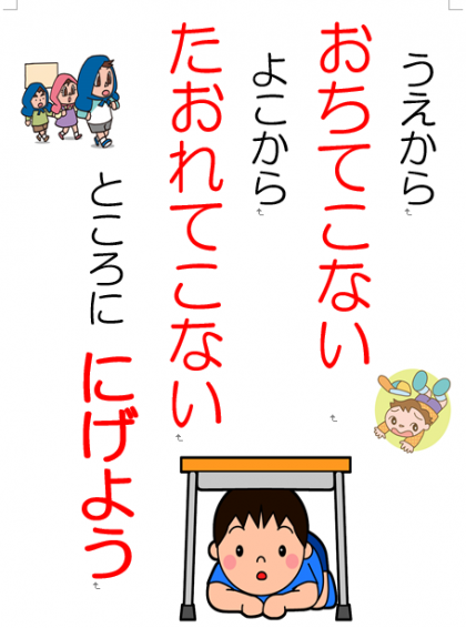 ご家庭でも、この「シェイクアウト訓練」について話し合ってみてください。