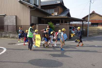地域の方が、安全に渡れるように見守ってくださっていました。