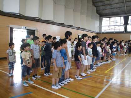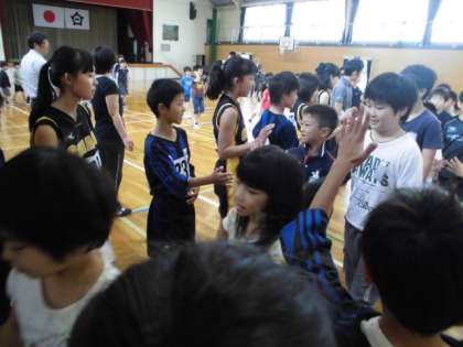 今朝は全校児童で陸上部の選手の壮行会を行いました。