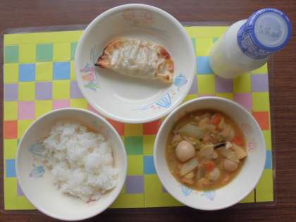 ごはん、牛乳、中華飯、焼きギョーザ