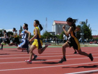 今日は、陸上大会がありました。強い風の中、選手はがんばっていました。