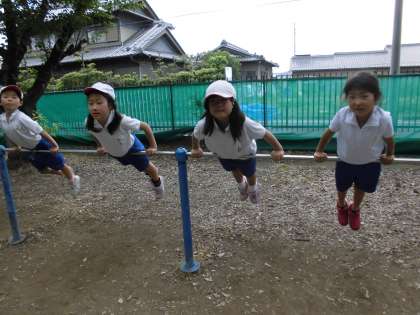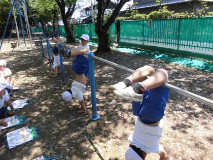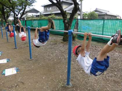 「地球回り」や「こうもり振り」など、色々な技にチャレンジしています。家庭でも練習してきて、がんばっている姿がすばらしかったです!