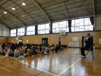 5年史を対象にした福祉実践教室に参加しました。アイマスクをしての階段の上り下りはとても怖かったけど、ガイドヘルプ役の友達のサポートのおかげで、全コースを歩くことができました。準備から最後の後片付けまでよく頑張りました。