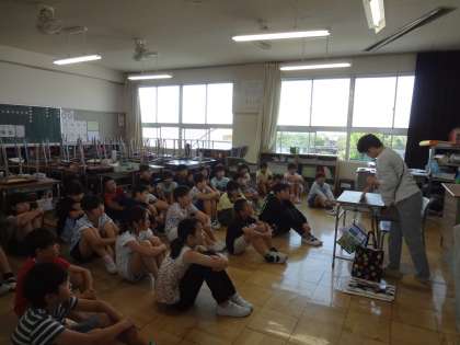 今日は1組で読み聞かせをしていただきました。 みんな興味をもって聞きました。