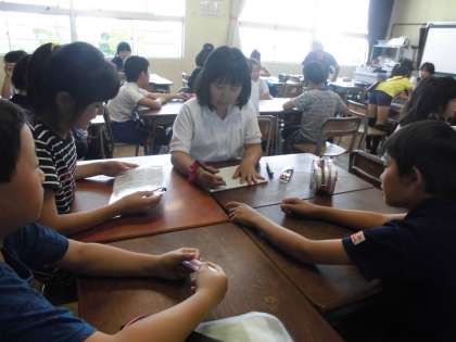 2組では、よりよい話し合いの仕方を考え、その後クラスの残飯が多い問題について話し合いました。良い話し合いが、活発に行われていました。