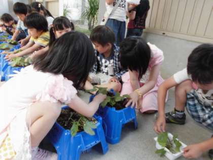 5月25日 あさがおの苗を1本にしたよ。1年生 公開日 2018/05/25 更新日 2018/05/25 1年 たくさん芽が出たアサガオの苗を一番元気な1本だけ残して、残りは持ち帰りました。おうちで植えて育ててね。