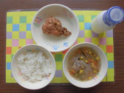 5月28日 今日の給食 公開日 2018/05/28 更新日 2018/05/28 本日の給食 ≪本日の献立≫ ごはん、牛乳、春雨スープ、鶏のからあげ ≪献立一口メモ≫ 春雨は、緑豆やじゃがいもなどのでんぷんを加工して作られます。透明で細長い形が、しとしと降る春の細い雨を思わせることから漢字で春の雨と書いて「春雨」と呼ばれています。乾燥したものを水や湯でもどしてから汁物やいため物、サラダなどに使い、つるっとした食感が魅力です。日本では6世紀ごろから食べられていたようです。