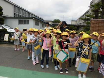5月28日 学校のまわりを探検したよ。(1)1年生 公開日 2018/05/28 更新日 2018/05/28 1年 学校探検で学校の中を探検しました。今日は学校のまわりの探検です。交通安全教室で教えてもらった標識の本物や道に書いてある字やみんながうつるミラーなど、いろんなものを発見しました。