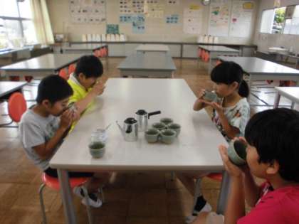 5月28日 お茶を入れました 公開日 2018/05/28 更新日 2018/05/28 あすなろ 今日はお茶の入れ方を学習しました。 初めはガスコンロの点火の仕方を体験しました。次に、先生に入れてもらったお茶を飲みました。みんなお行儀がいいです。