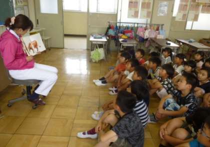 毎回子どもたちの心に残る、すてきな本を読んでいただいています。みんな真剣に聞き入っていました。