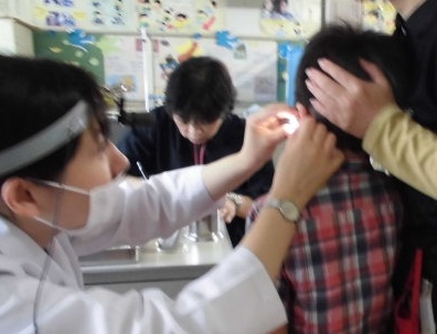 いろいろな健康の検査があります。今日は耳鼻科検診です。耳と鼻とのどをみてもらいました。