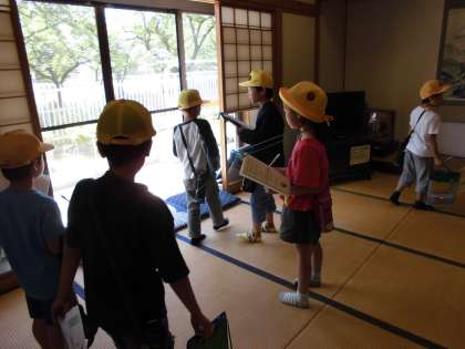 「老人憩いの家」では、色々な部屋や、お年寄りの方が作った素晴らしい作品や、立派なお風呂などを見せていただきました。みんな一生懸命質問をしていました。