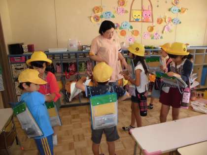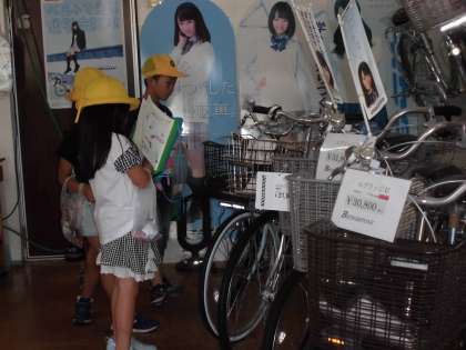 水野自転車、児童館、保育園など、グループごとに分かれて、安全に気をつけて見学することができました。保育園出身の子たちは、懐かしがって、先生に会えて嬉しそうでした。可愛い子たちがいっぱいいて、「自分もこんなに小さかったんだなあ」と改めて感じた子たちが大勢いました。暑い中、ボランティアのお父さん、お母さん、本当にお世話になりました。ありがとうございました。町たんけんに協力してくださった方も、本当にありがとうございました。