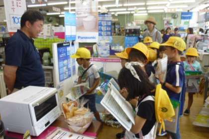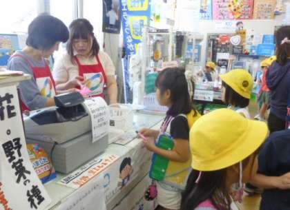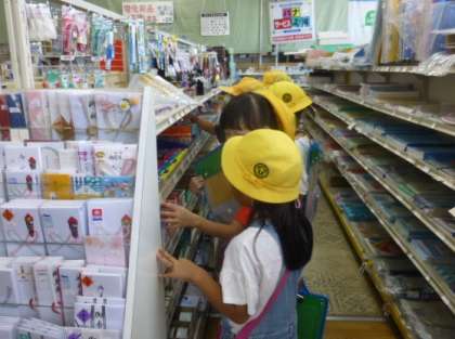 マルキョウでは、インタビューしたり、お買い物をしたりしました。100円で買える物は何かを考えながら、楽しんで商品を選んでいました。