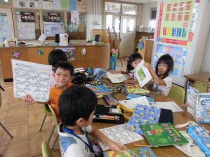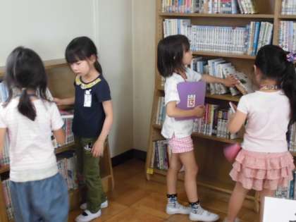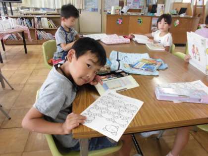 今日から、あじさい読書週間がはじまりました。さっそく図書館で本を借りて、あじさい読書の用紙に書き込んだ人もいましたね。