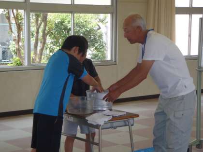 そして、メダカやドジョウ、ヌマエビなどを入れた、各教室で飼育するための淡水アクアリウムを作っていただきました。
