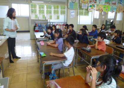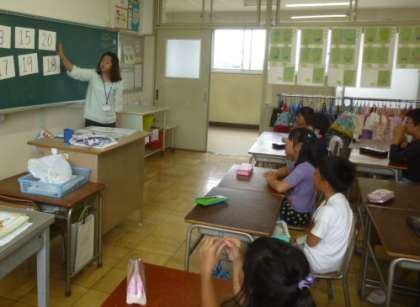 マリア先生に、動物や数の言い方を教えていただきました。「ドッグ」「エレファント」など、先生の発音をまねして、繰り返し言いながら覚えていました。