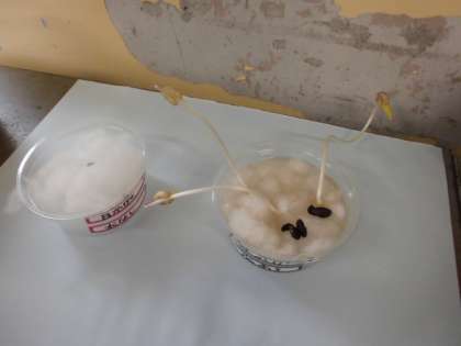4年生は1時間、しっかり先生の話を聞きながら学習していました。5年生はインゲン豆の発芽の観察を着々と進めています。ただ、缶の蓋で育てたインゲンが、まるでもやしのようになってしまった事に、本当に驚いていました。実験、観察は楽しいです。