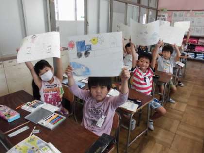 6月12日 「かたちをうつして」の学習をしたよ。1年生