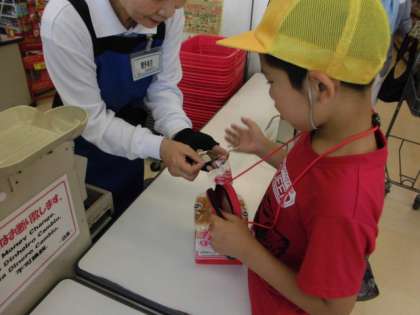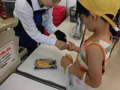 前回はアイスクリームを買いましたが、今回はおうちの人に頼まれた「おつかい」をしました。頼まれたものを探せるかドキドキしながら出発しましたが、ちゃんと品物を見つけ、買うことができました。レジでお金を落とすこともなく、スムーズに買い物をすることができました。