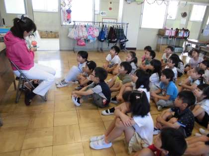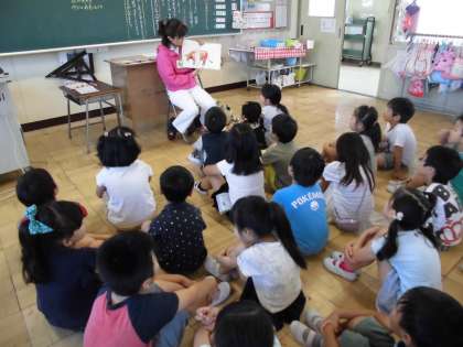 今日は、読み聞かせのお母さんが、命の大切さ、食べ物のありがたさについて考えさせられる本を読んでくれました。感謝の気持ちをもって、食事を頂く前は「いただきます」食事が終わったら「ごちそうさまでした」のあいさつがしっかりできるようにしたいですね。