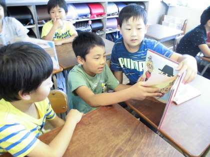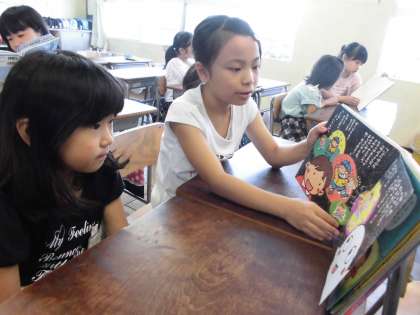 4年生は、初めてお兄さん・お姉さんという立場でペアの子に読み聞かせをしました。本の持ち方を意識したり、ゆっくり読んだりと2年生のペアの子の事を考えながらできました。