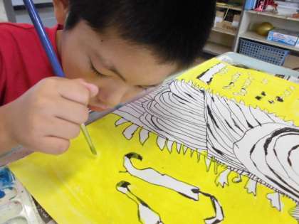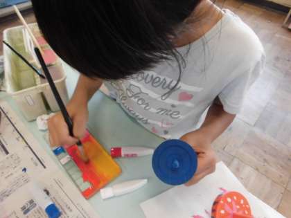外を見てイメージした絵とコマの柄をいれています。 色づかいがどんどん豊かになっているようです。