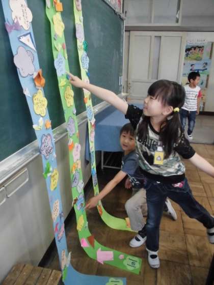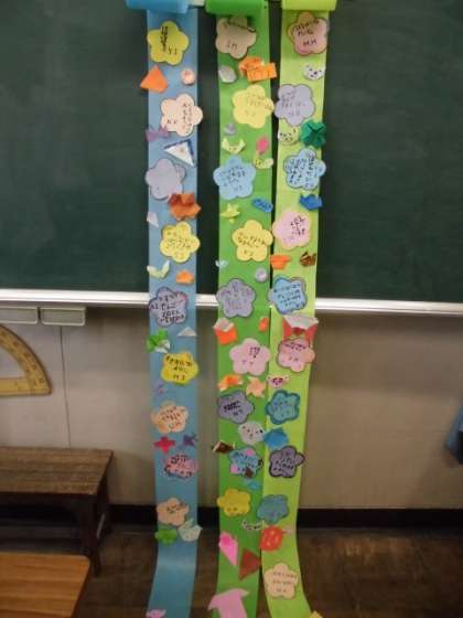6月15日 七夕飾りの願い事を書いたよ。1年生