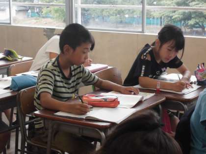 ジメジメした教室の中でも、子どもたちは勉強に励んでいます。今日はプールに入れませんでした。月曜日は晴れるといいですね。