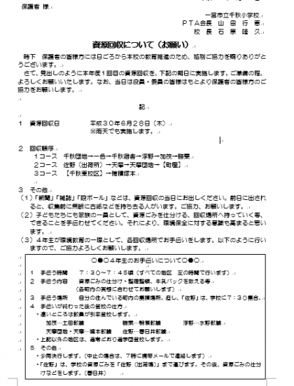 6月19日 PTAの行事のご案内 PTA