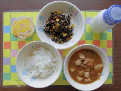 ごはん、牛乳、豚汁、ひじきのいため煮、レモンゼリー